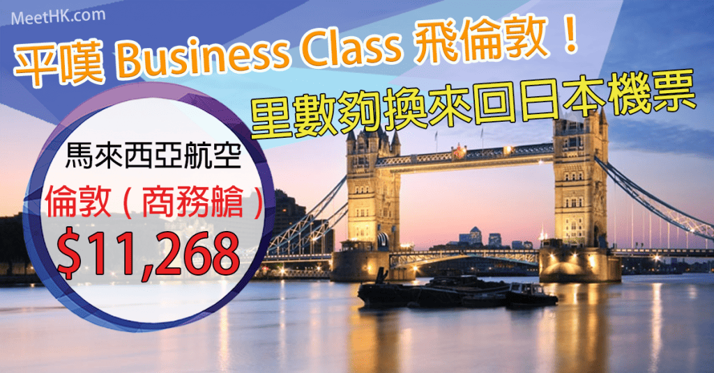 平嘆Business Class飛倫敦!5月31日前出發!香港往返倫敦商務艙只需$11,268 – 馬來西亞航空 (優惠至3月11日)