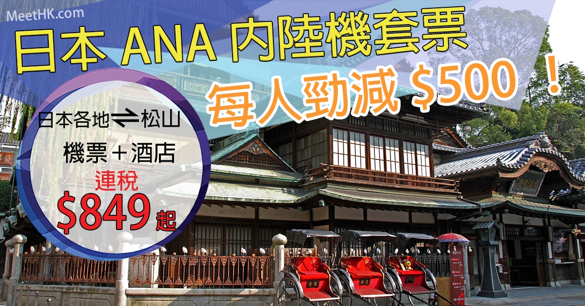 減$500後,ANA日本各地來回松山機票連一晚愛媛市酒店套票每人連稅只需$849起