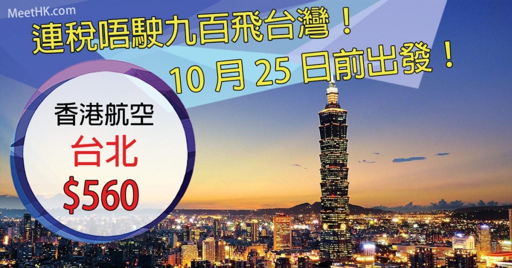 抵呀!連稅唔駛九百飛台北!10月25日前出發!香港往返台北只需$560 – 香港航空