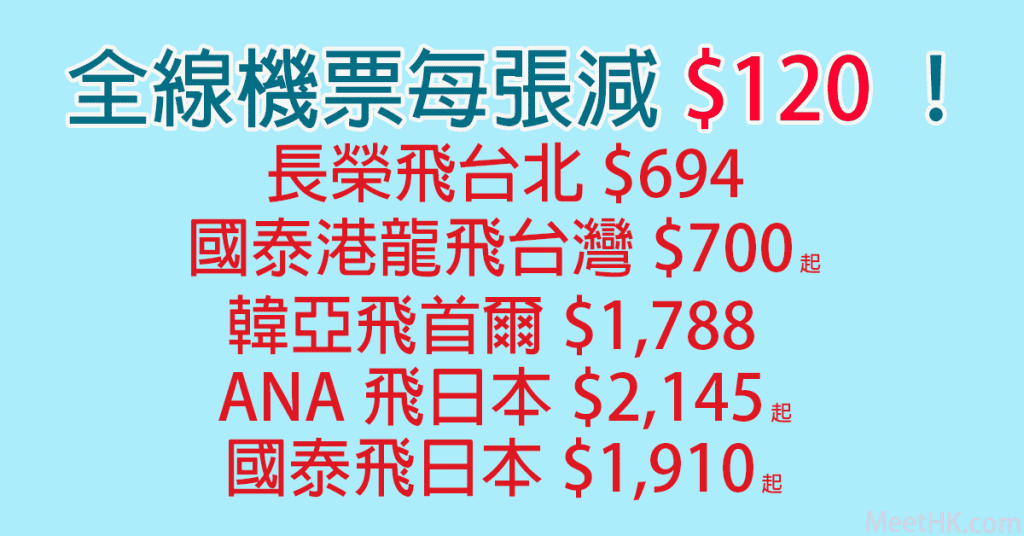 全線機票每張減$120!長榮飛台北$694,國泰港龍飛台灣$700起、韓亞飛首爾$1,788、ANA飛日本$2,145起、國泰飛日本$1,910起、澳航飛澳洲$3,209起 – GoGoGo!(優惠至3月14日)