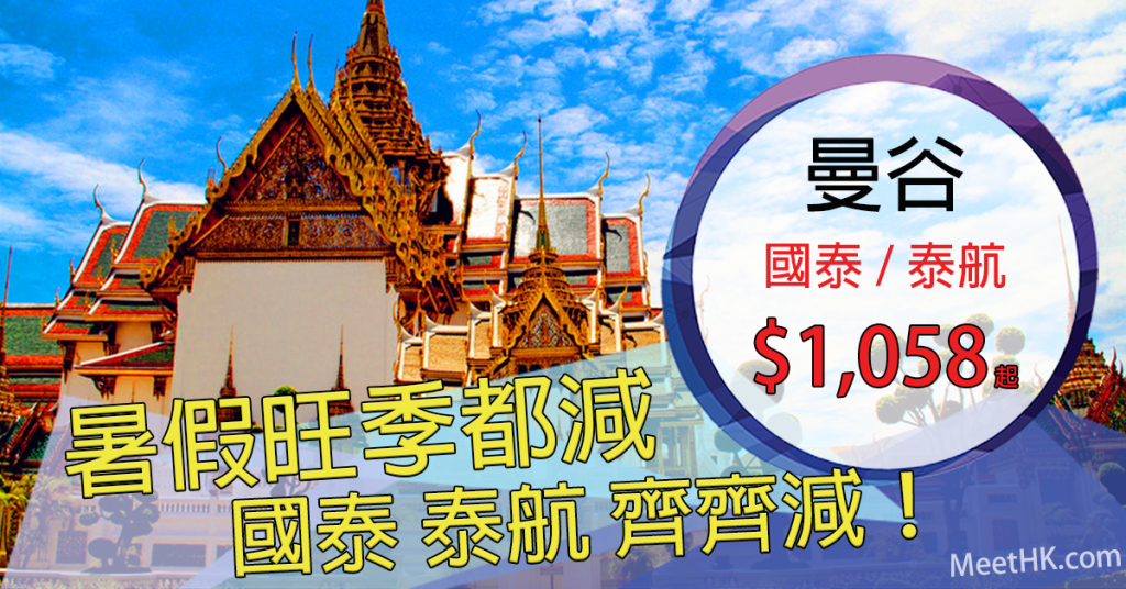 國泰泰航齊齊減!暑假都有平!香港往返曼谷只需$1,058起(泰航),$1,434起(國泰) – 心程旅遊 S Travel (優惠至3月31日)