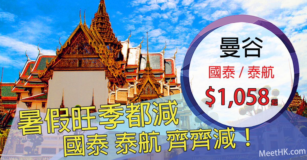國泰泰航齊齊減!暑假都有平!香港往返曼谷只需$1,058起(泰航),$1,434起(國泰) – 心程旅遊 S Travel (優惠至3月31日)