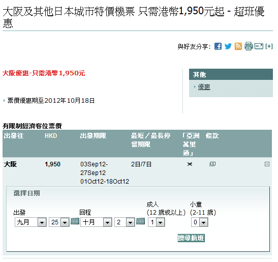 優惠既出發日期由今日去到9月27日、10月1日至10月18日