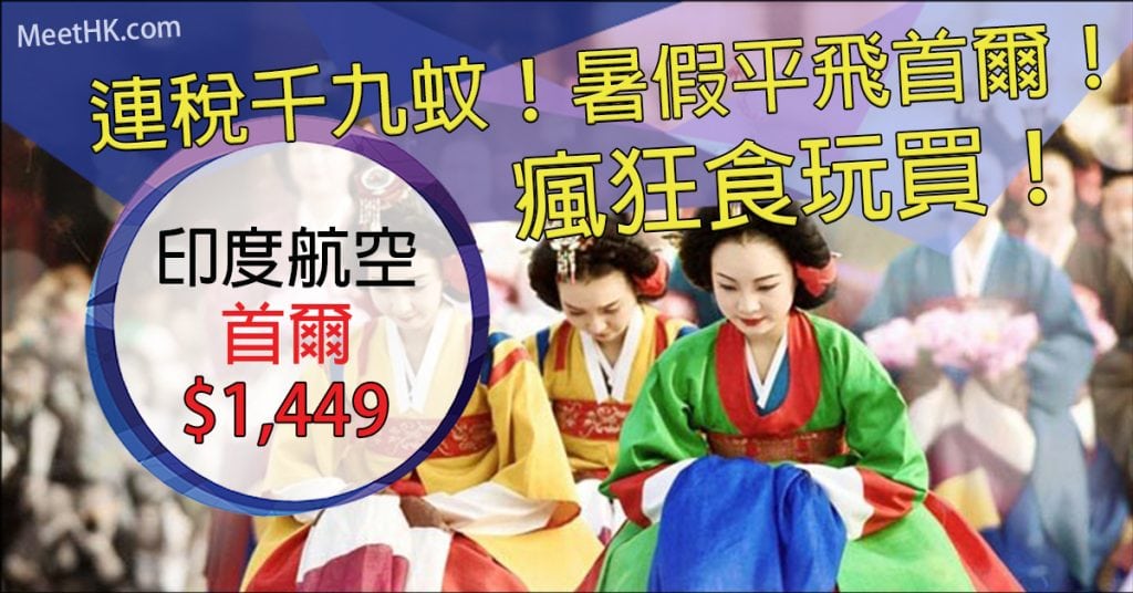 抵呀!暑假旺季平飛首爾!10月30日前出發!早機出發!香港往返首爾只需$1,449 – 印度航空
