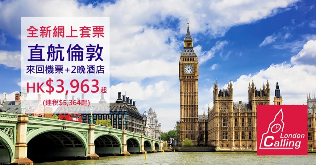 抵呀!只售7天!連稅五千三直飛倫敦仲多2晚酒店!10月31日前出發!維珍直飛倫敦來回機票+2晚酒店只需$3,963起!再送維珍限量版禮品 – London Calling 維珍假期 (優惠至4月17日)