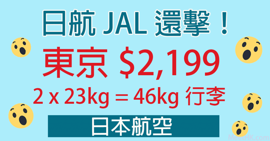 終於等到!日航JAL還擊!6月30日前出發!兩件各23kg行李!香港往返東京只需$2,199 – 日本航空 (優惠至3月31日)