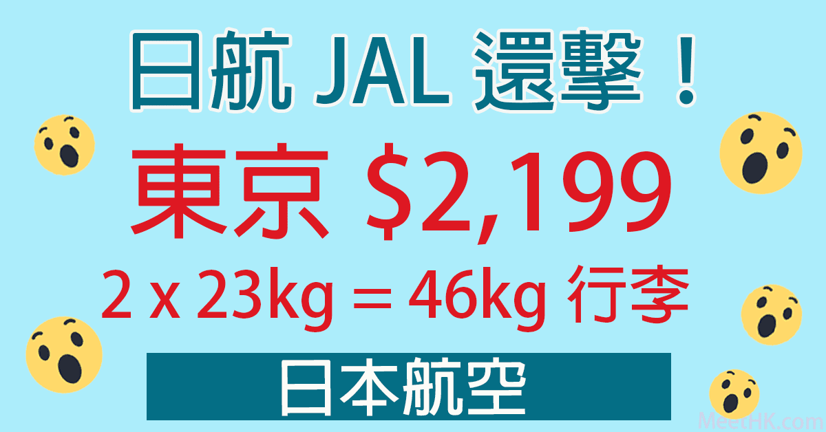 終於等到!日航JAL還擊!6月30日前出發!兩件各23kg行李!香港往返東京只需$2,199 – 日本航空 (優惠至3月31日)