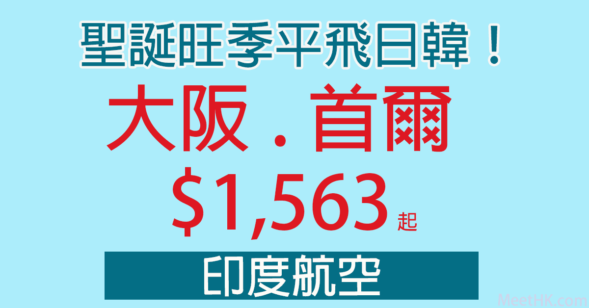 抵呀!聖誕旺季平飛日韓!早機出發!香港往返大阪、首爾只需$1,563起 – 印度航空