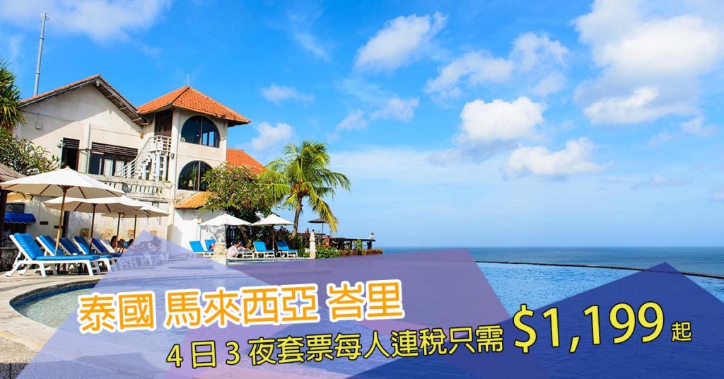 香港飛沙巴/布吉/峇里島/浮羅交怡;澳門飛芭堤雅43夜套票每人連稅只需$1,199起、馬爾代夫$2,985、黃金海岸$3,670