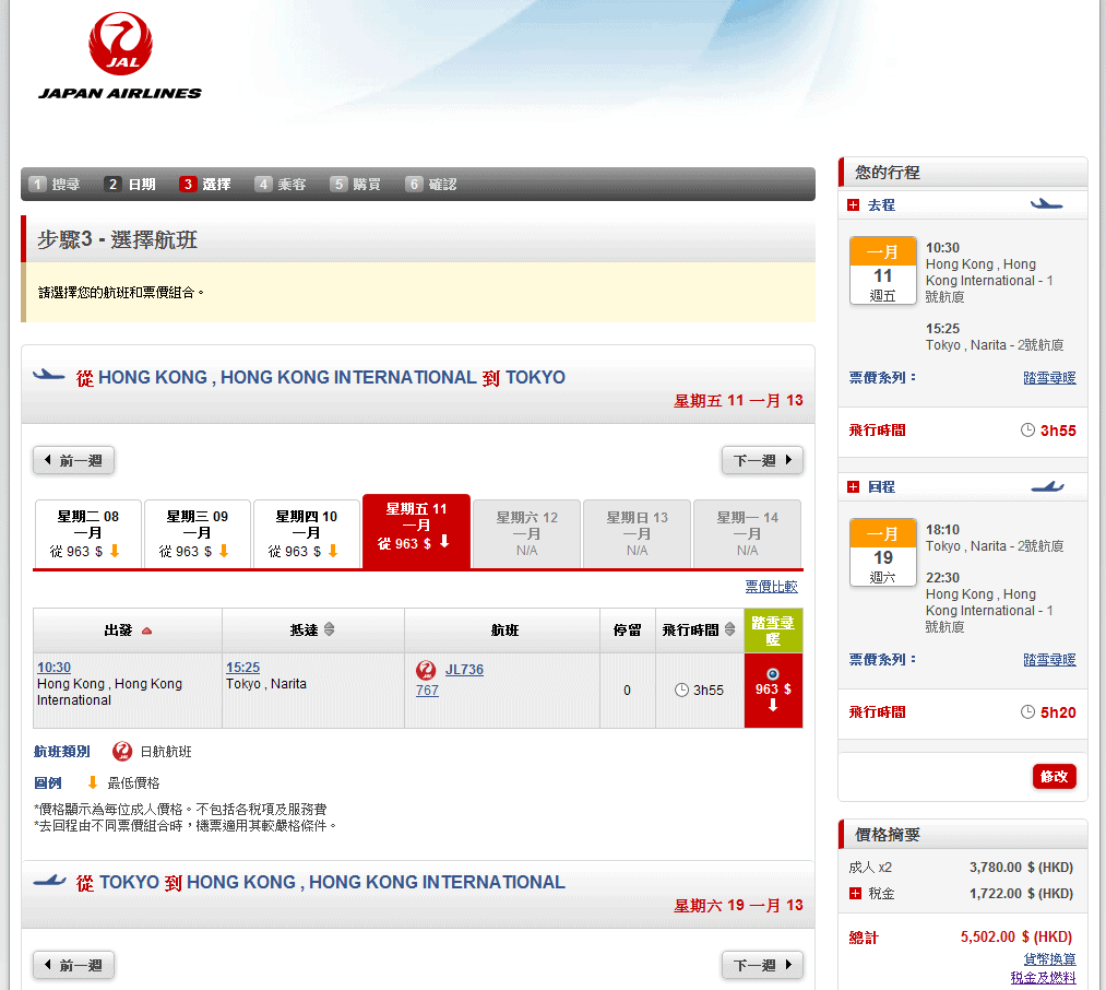 大家可以上日本航空官網訂飛 (記住人數必須揀2人或者以上先見到優惠)