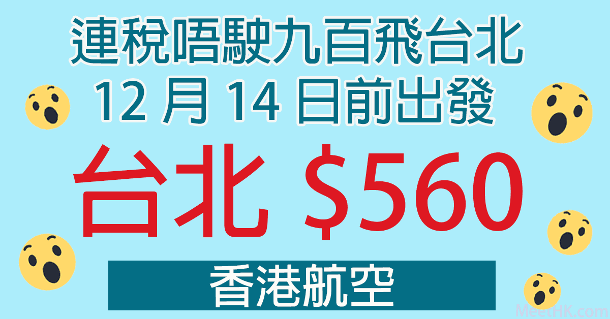 抵呀!連稅唔駛九百飛台北!12月14日前出發!香港往返台北只需$560 – 香港航空