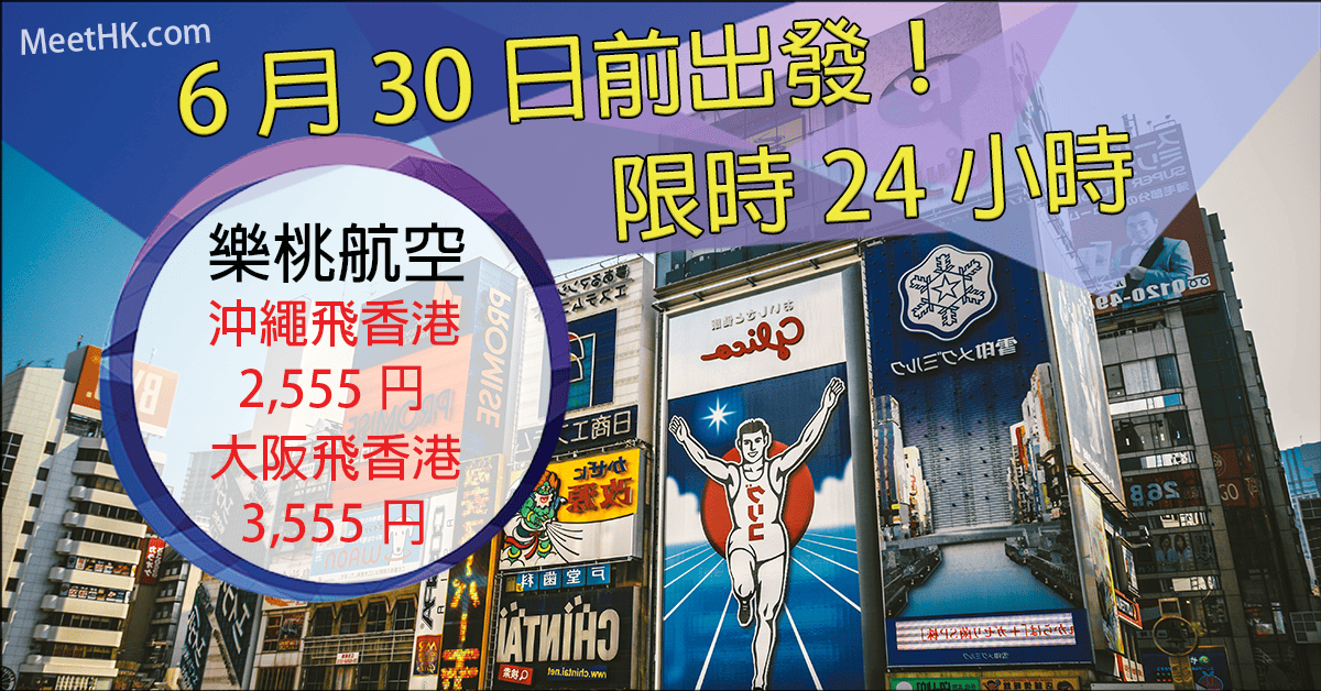 今晚11點開賣!6月30日前出發!沖繩飛香港單程只需2,555円、大阪3,555円 – 樂桃航空 (優惠至3月29日11pm)
