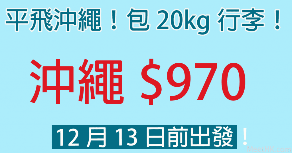 平飛沖繩!12月13日前出發!包20kg行李!香港往返沖繩只需$970起 – 香港航空