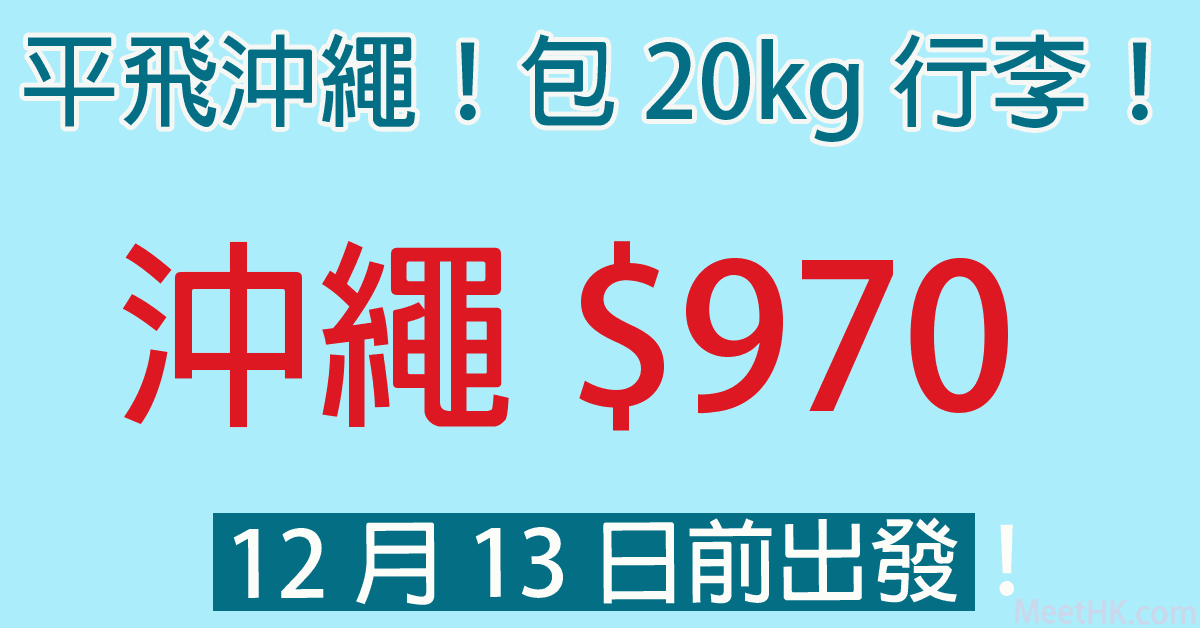 平飛沖繩!12月13日前出發!包20kg行李!香港往返沖繩只需$970起 – 香港航空