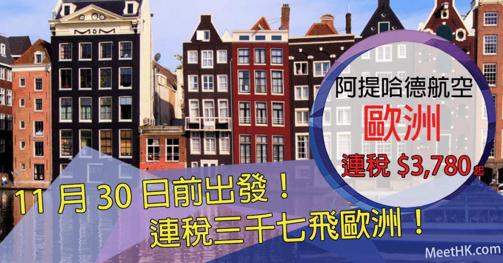 連稅三千七飛歐洲!11月30日前出發!香港往返歐洲各地連稅只需$3,780起 – 阿提哈德航空 (優惠至4月6日)