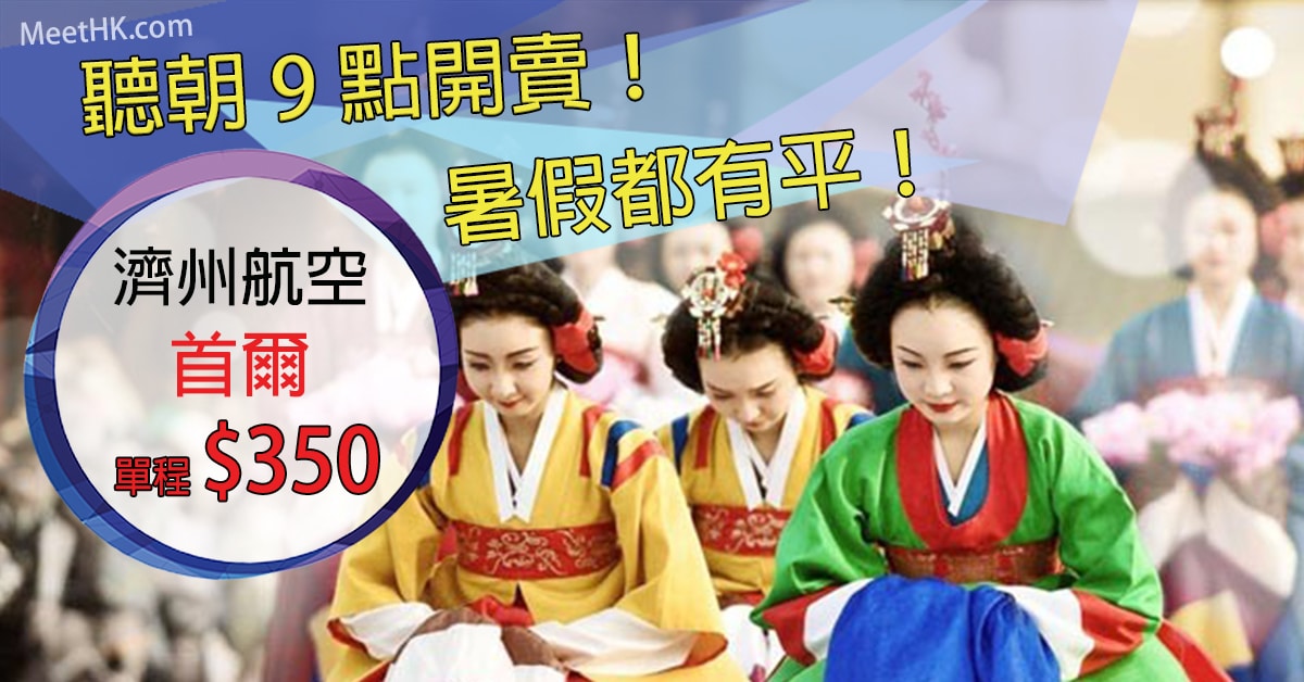 明早9點開賣!暑假都有平!6月至7月出發!香港/澳門飛首爾單程只需$350/MOP350 – 濟州航空 (優惠至4月13日)