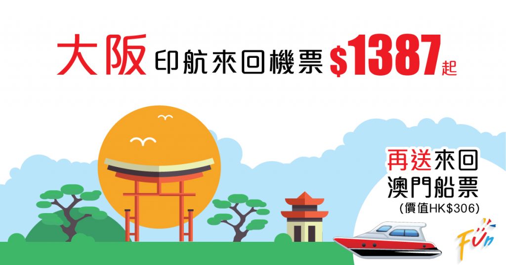 又有飛大阪平機票啦,Funfun.travel推出左印航飛大阪預留機位優惠