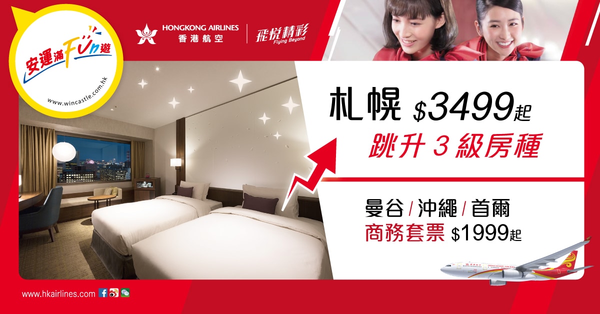 喺安運滿Fun遊預訂香港航空來回札榥3日2夜套票都只需$3,499起,連稅$3,831起