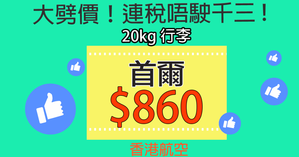 香港往返首爾只需$860,連稅$1,263,呢個價好吸引