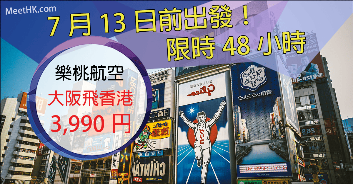 今晚11點開賣!7月13日前出發!大阪飛香港單程只需3,990円 – 樂桃航空 (優惠至4月15日11pm)