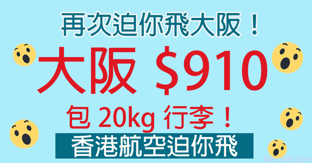 想平飛大阪!香港航空又再減減減啦!$910飛大阪!
