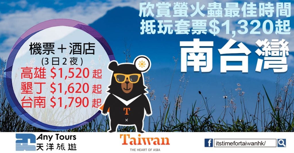 南台灣抵玩套票!欣賞螢火蟲最佳時間!高雄3日2夜套票每人$1,520起,墾丁$1,620起、台南$1,790起 – Any Tours 天洋旅遊