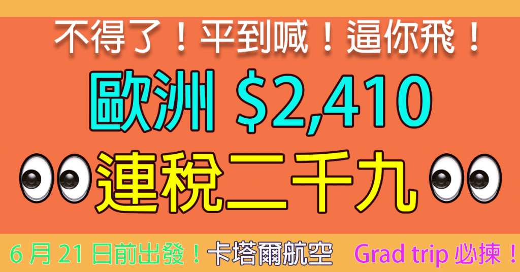 嘩嘩嘩!不得了!連稅二千九飛歐洲!香港往返歐洲各地只需$2,410起 – 卡塔爾航空 Qatar Airways (優惠至5月3日)