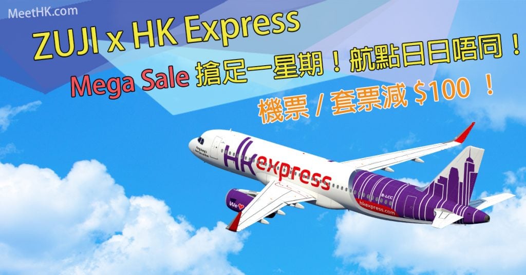 搶足一星期!Mega Sale ZUJI同步開賣!HK Express機票/套票連稅滿$1,000即減$100!套票仲送來回20kg行李(價值$458) – ZUJI HK (優惠至5月1日)