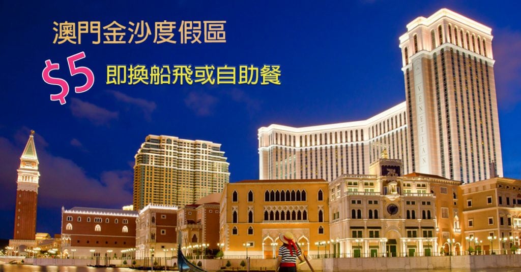 勁筍!加$5即換澳門船飛或自助餐!訂房即享!最後3日!金沙城中心假日酒店每晚$745起,澳門巴黎人$899起,康萊德$1,049起,澳門威尼斯人$1,124起 (優惠至5月31日)