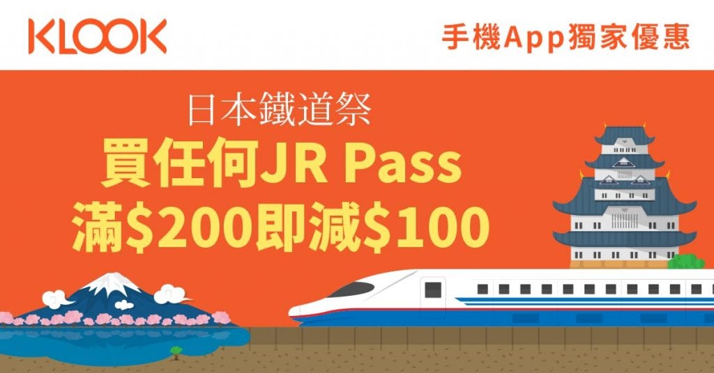 Klook 推出左日本鐵道祭優惠,用App預訂任何JR Pass滿$200即減$100