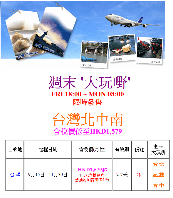 $860呢個價只適合10月6日或之前出發,同埋只適合台北同高雄