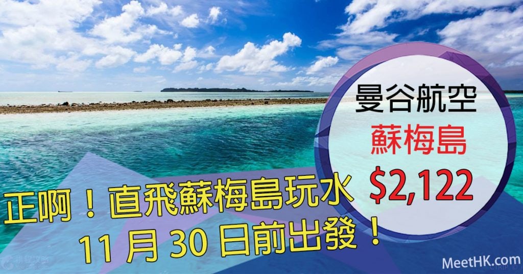 罕減!11月30日前出發!香港直航往返蘇梅島只需$2,122起 – 曼谷航空 (優惠至4月28日)