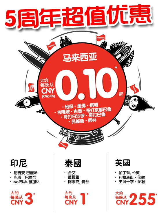 AirAsia 亞洲航空旗下 Tune Hotels 將會係今日凌晨(9月18日0:00)推出五周年超值優惠 (尋日我地係Facebook誤以為今日開賣,對此向各位講聲唔好意思)
