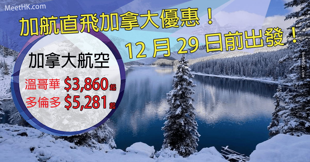 加航直飛加拿大優惠!12月29日前出發!香港直航往返溫哥華只需$3,860,多倫多$5,281 – 加拿大航空 (優惠至5月14日)