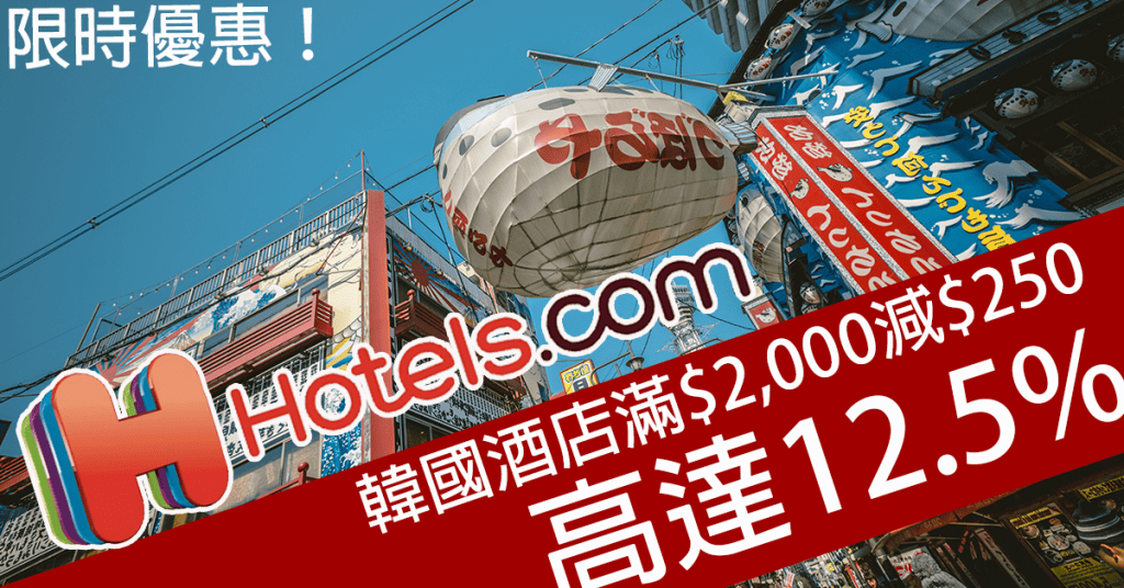 限時優惠!高達12.5%!Hotels.com網上預訂韓國酒店滿$2,000減$250折扣優惠代碼 (2017年7月31日前入住)
