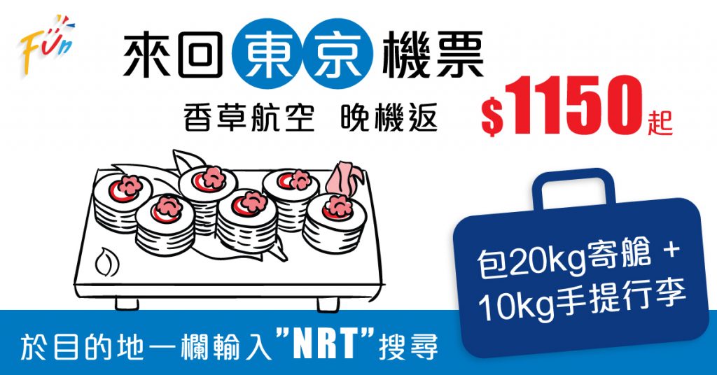 Funfun.travel網上即時訂購:https://funfun.travel/ (記得於目的地一攔輸入「NRT」先搜尋到架!)