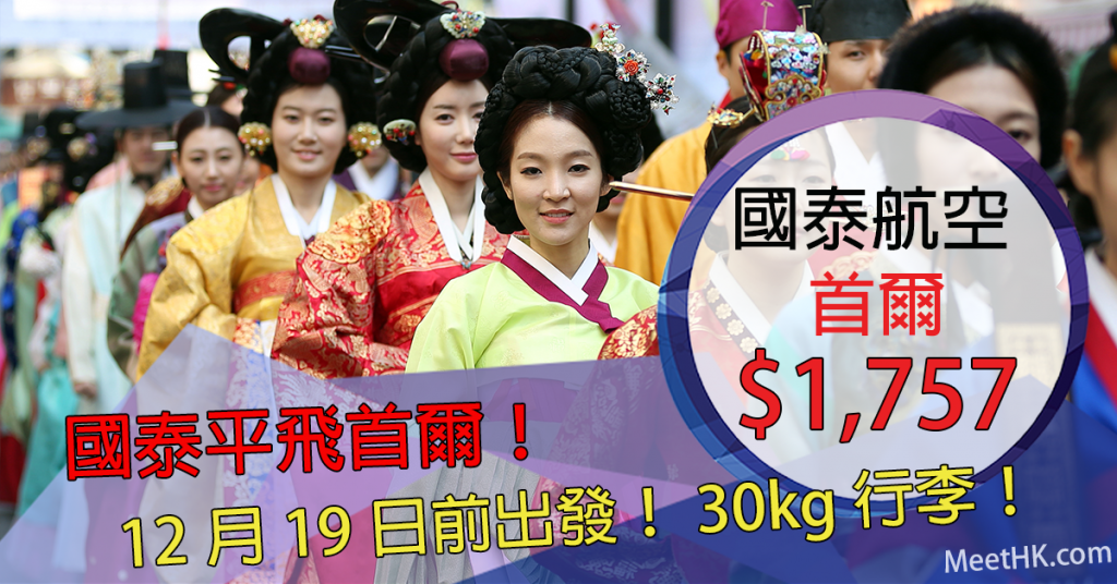 國泰平飛首爾!12月19日前出發!30kg行李!香港往返首爾只需$1,757 – 國泰航空 (優惠至6月30日)