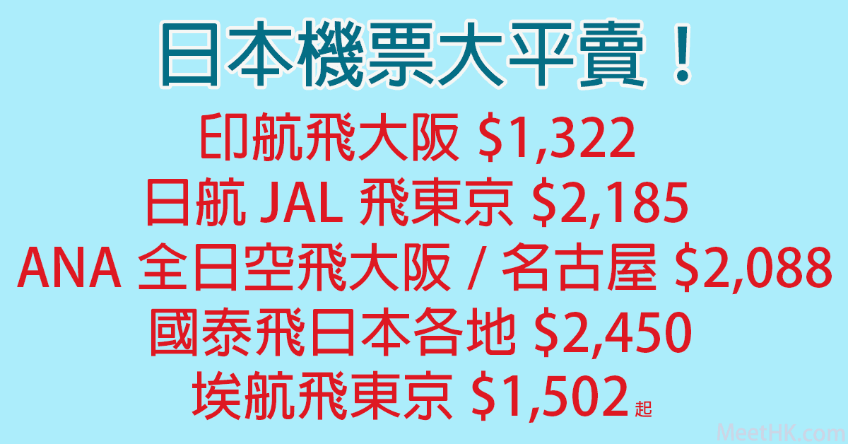 日本機票大平賣!印航飛大阪$1,322,日航JAL飛東京$2,185,ANA全日空飛大阪/名古屋$2,088;國泰飛日本各地$2,450;埃航飛東京$1,502起 – Wefly.com.hk (優惠至5月7日)