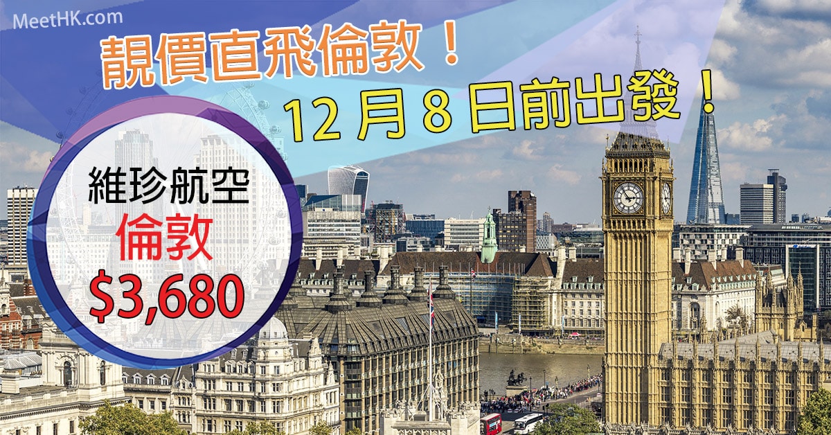 抵呀!直飛倫敦靚價!連稅只係五千一!12月8日前出發!維珍航空香港直航往返倫敦只需$3,680 – ZUJI HK (優惠至5月15日)