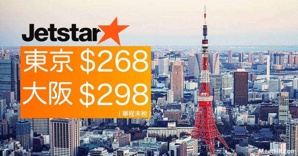 抵呀!明早10點開賣!香港飛東京單程只需$268,大阪$298,新加坡$198,河內/胡志明市/峴港$188起 – Jetstar (優惠至5月18日)