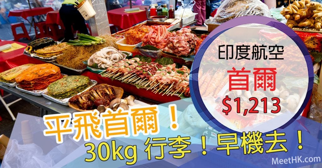 平飛首爾!11月30日前出發!早機出發!香港往返首爾只需$1,213 – 印度航空 (優惠至5月31日)