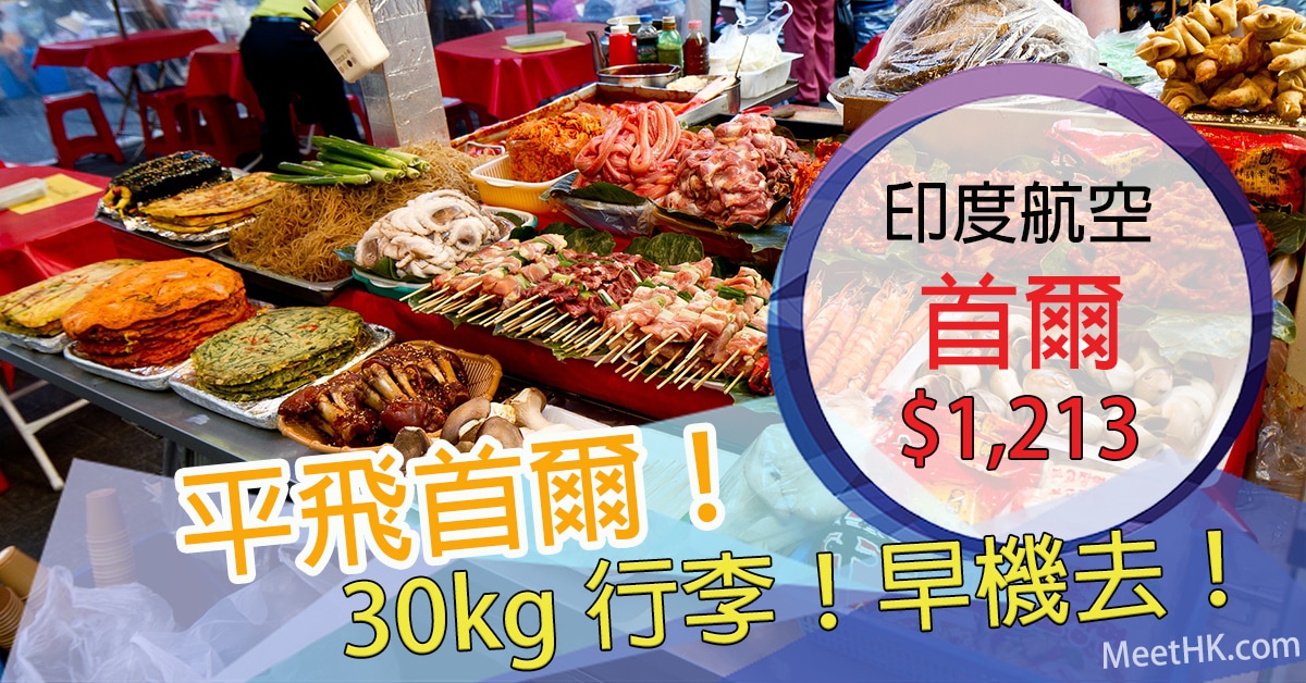 平飛首爾!11月30日前出發!早機出發!香港往返首爾只需$1,213 – 印度航空 (優惠至5月31日)