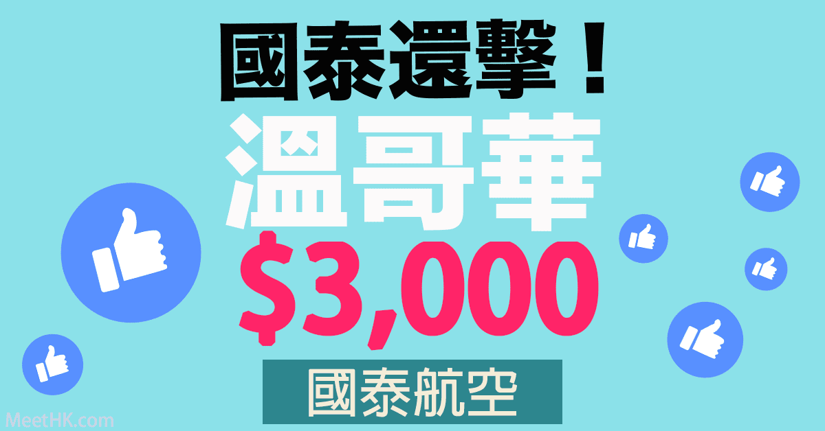 嘩嘩嘩!抵爆!連稅三千七!國泰還擊!香港直航往返溫哥華只需$3,000 – 國泰航空 (優惠至5月20日)