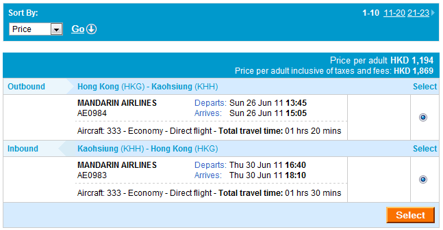呢個promotion 亦適用於 台北入高雄出 or 高雄入台北出,大家可以用ZUJI HONG KONG 既Multi-stops 功能search 一下
