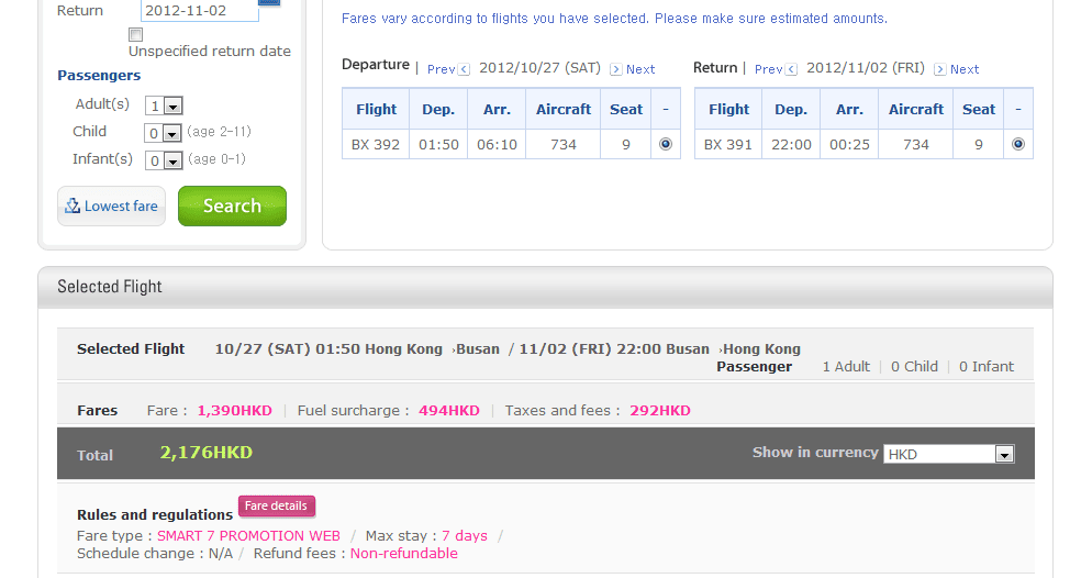 而11月份出發,唔知係咪釜山航空網站仲未update,暫時見唔到$1,380呢個價,稍後再試吧