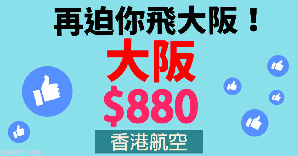 想平飛大阪!香港航空大阪平飛唔聲唔聲又減左幾十,兼且賣埋下年2月啦!$880飛大阪!