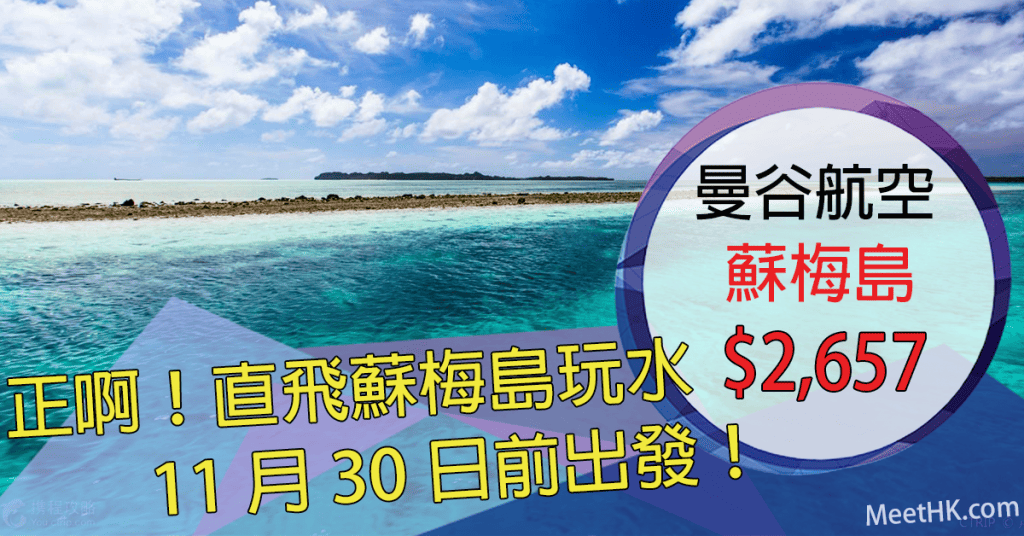 香港往返蘇梅島只需$2,657起,連稅$3,095起