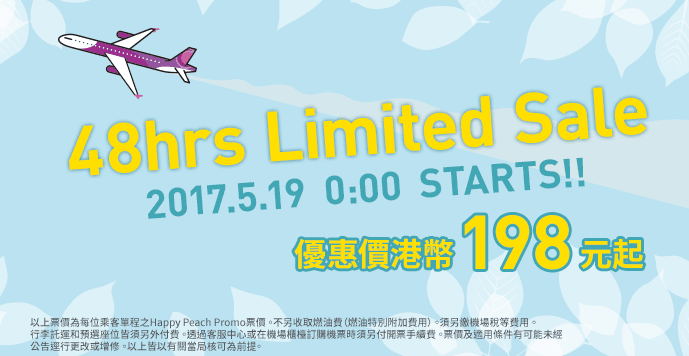 有興趣既話可以今晚12點(5月19日0:00)上樂桃航空官網搶飛
