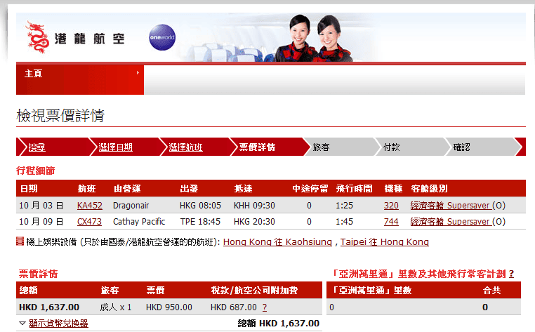尋日國泰同港龍官網終於更新左,而且除左台北,亦都加埋高雄,仲可以台北入高雄出或高雄入台北出