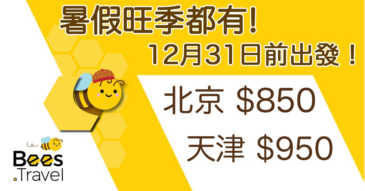 抵呀!暑假旺季都有!12月31日前出發!國航飛北京來回只需$850、天津$950;聖誕旺季飛東京$870起 – Bees.travel (優惠至5月30日)